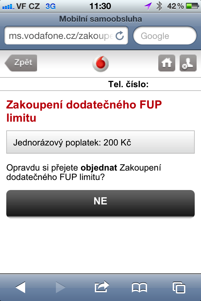 „Opravdu chcete dokoupit FUP?“ „Ne.“ A na